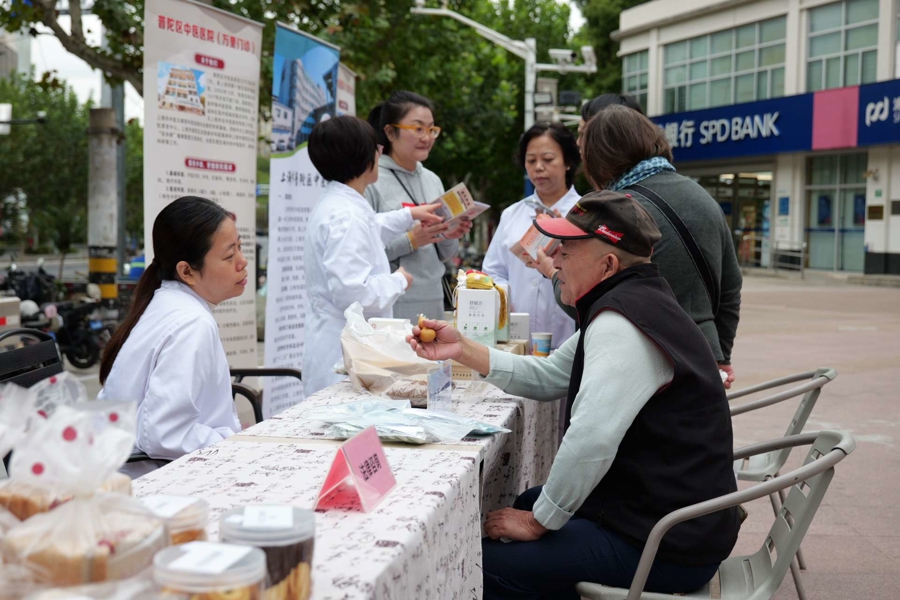 “幸福滋味”分享区里,传统重阳糕与清香菊花茶供大家免费品尝,商户代表一边将糕点分装到小纸碟里一边说:“看到老人家吃得开心,就是我们最好的重阳节礼物。”老人们手捧糕点和热茶,三两成群地站着聊天,空气中满是甜糯的香气和融洽的氛围。
